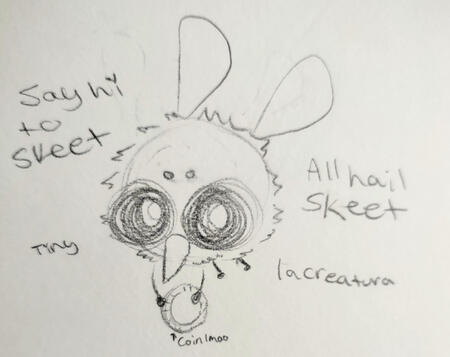 -Skeet is Tabi's pet! He's just a little guy who likes collecting shiney things and he's soft and fuzzy!